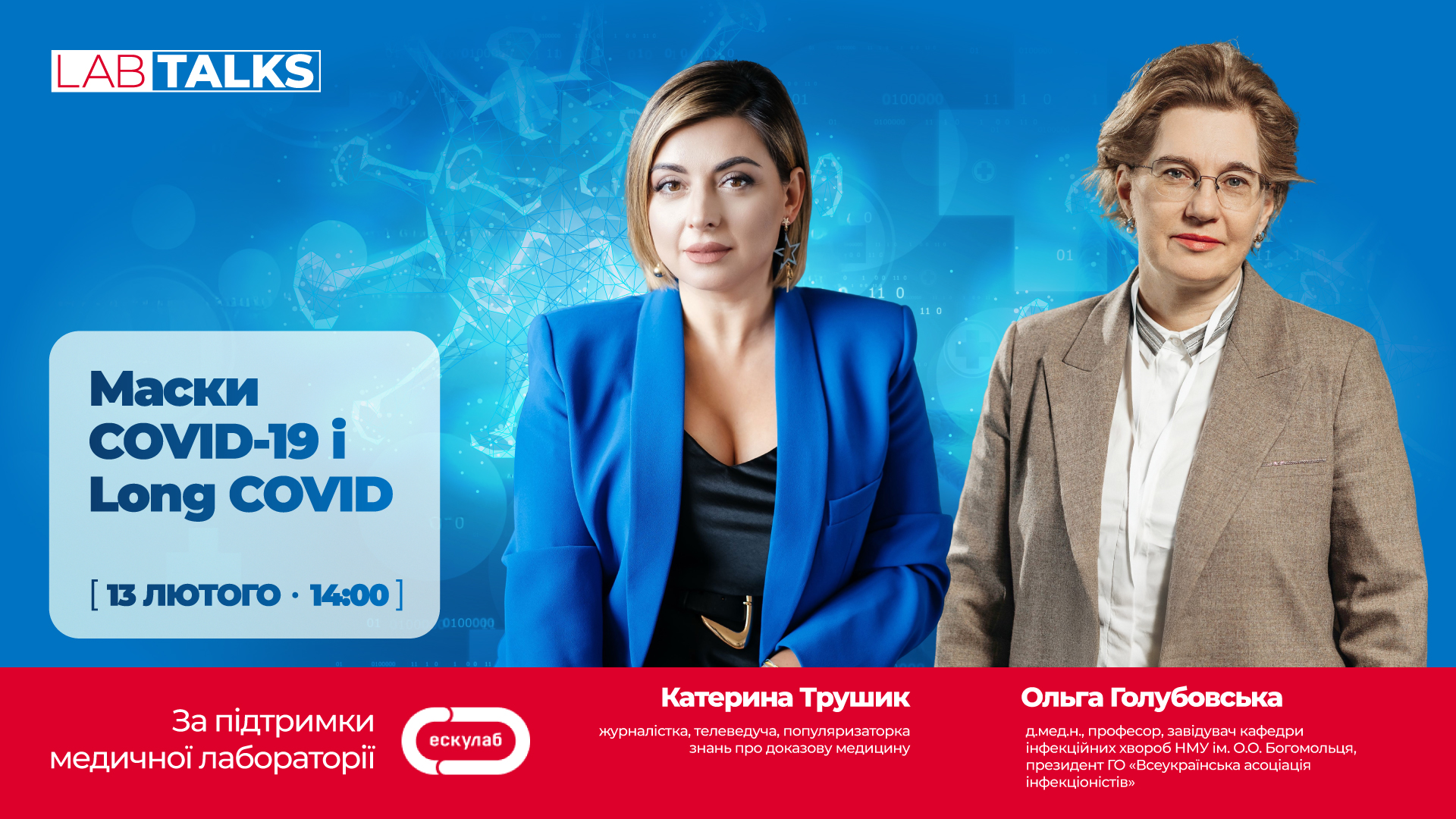 Запрошуємо вас на майстер-клас «Маски COVID-19 і Long COVID», який відбудеться 13 лютого о 14:00.